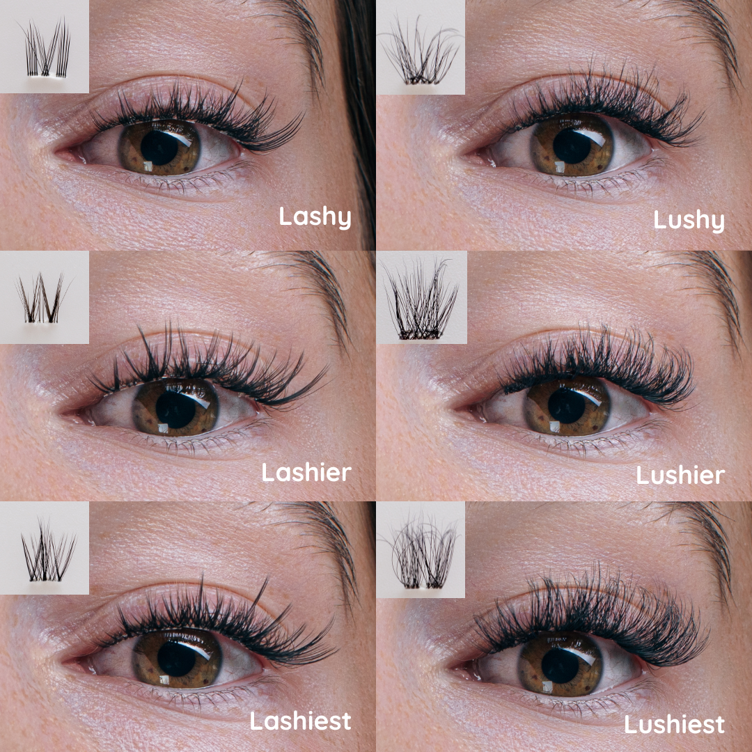 For a natural look, use 3-4 clusters. Lashy or Lushy are our top picks for a natural look. Our Lash collection has been exclusively designed to provide a delicately enhanced finish that is subtle for everyday wear.