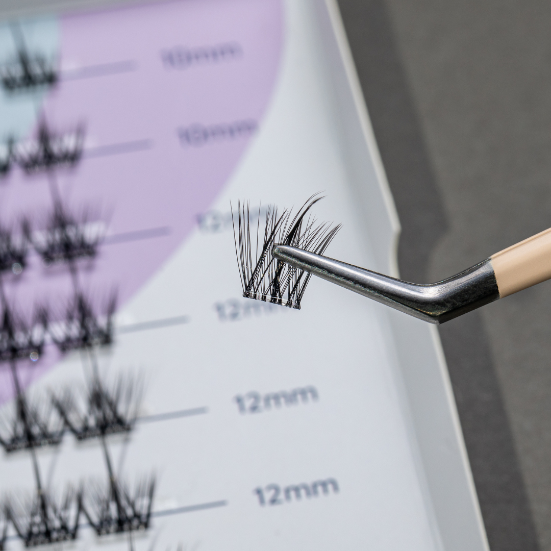 Once you have chosen what sizes you want to apply, we recommend the first cluster you should apply is the one at the outer rim of your eye, so the longest. You can then work your way in towards the inner rim.